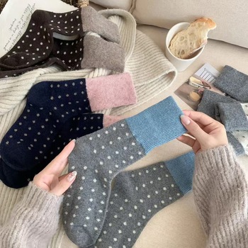 Calze di lana WUYANG in autunno e in inverno con colori spessi e caldi abbinati a piccoli punti e calzini Patchwork a metà polpaccio